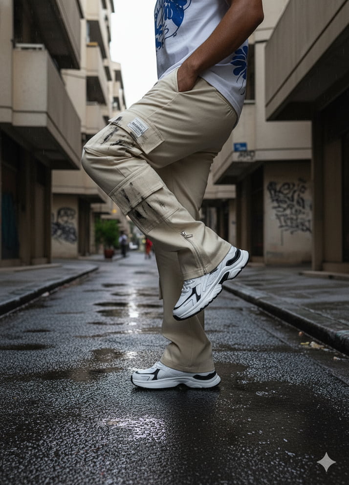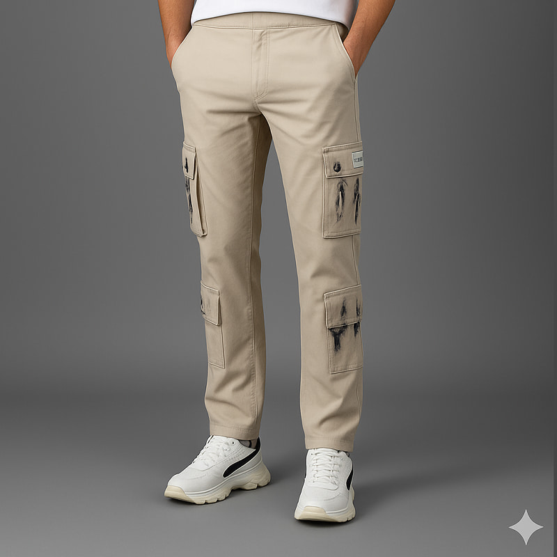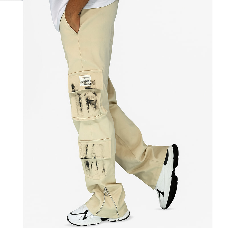 شلوار کارگو شش جیب پایین زیپ مدل sami-کرم
